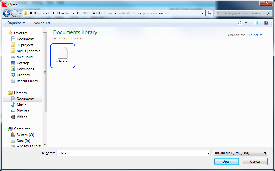 Download IR commands definition file: ac_panasonic_inverter.zip