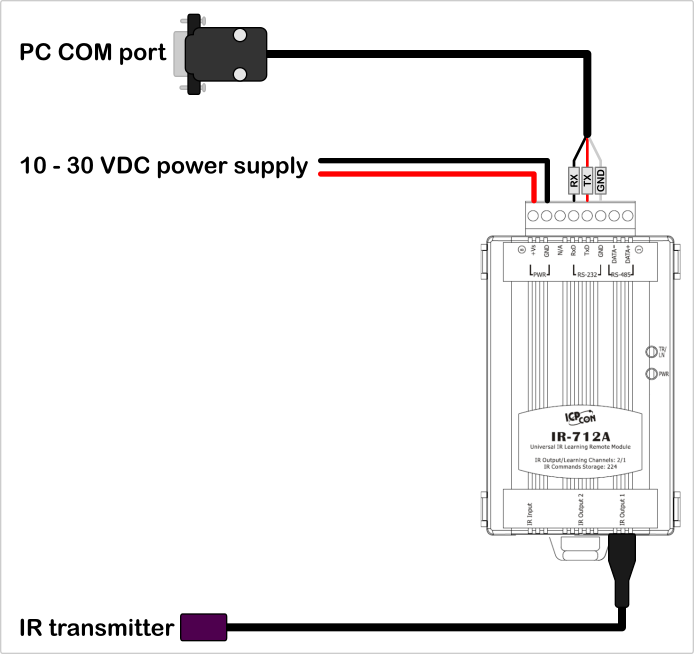Connect IR blaster IR-712A or IR-210 to power supply and PC.