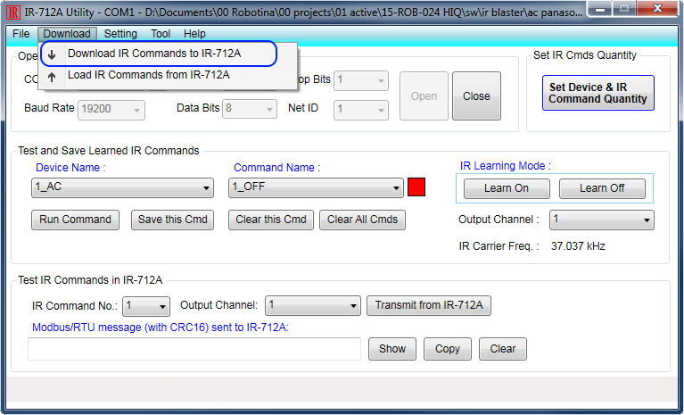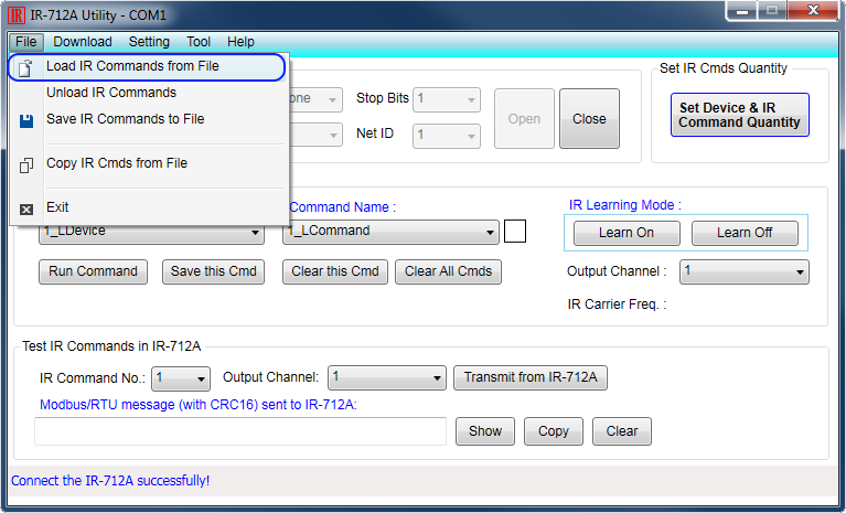 1. Load IR commands from file