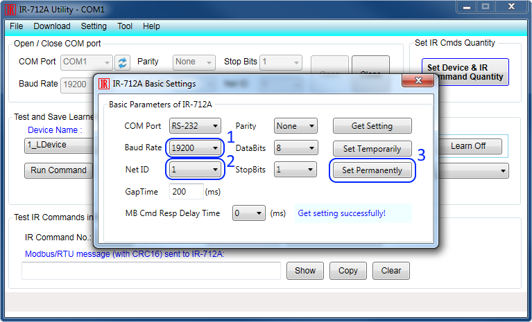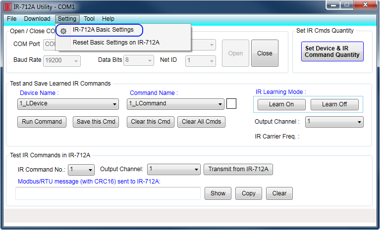 Go to “Settings” - “IR-712A Basic Settings”