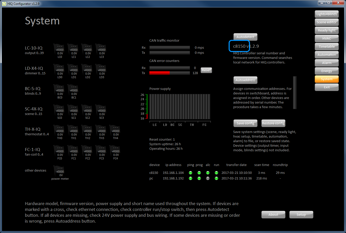 Get Controller serial number Open HIQ Configurator. Controller serial number is under “Autodetect” button on “System” page.