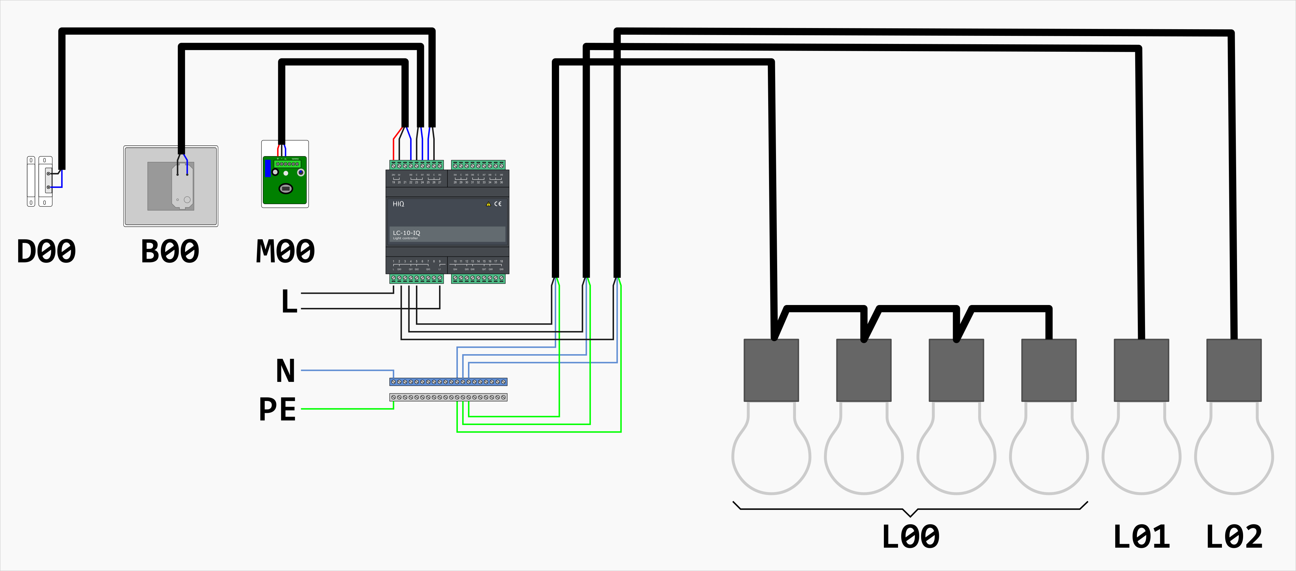 - Set Scene 00 (L00 → ON, L01 & L02 → OFF)