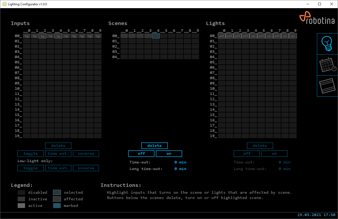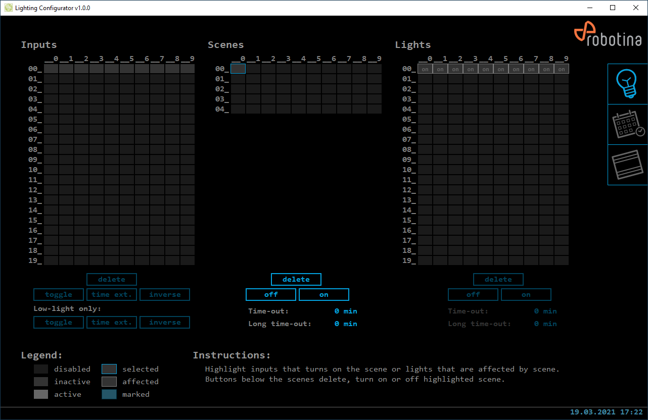 2. Mark the lights 0 to 9 (first row in the right table) to make the fields highlighted in blue.