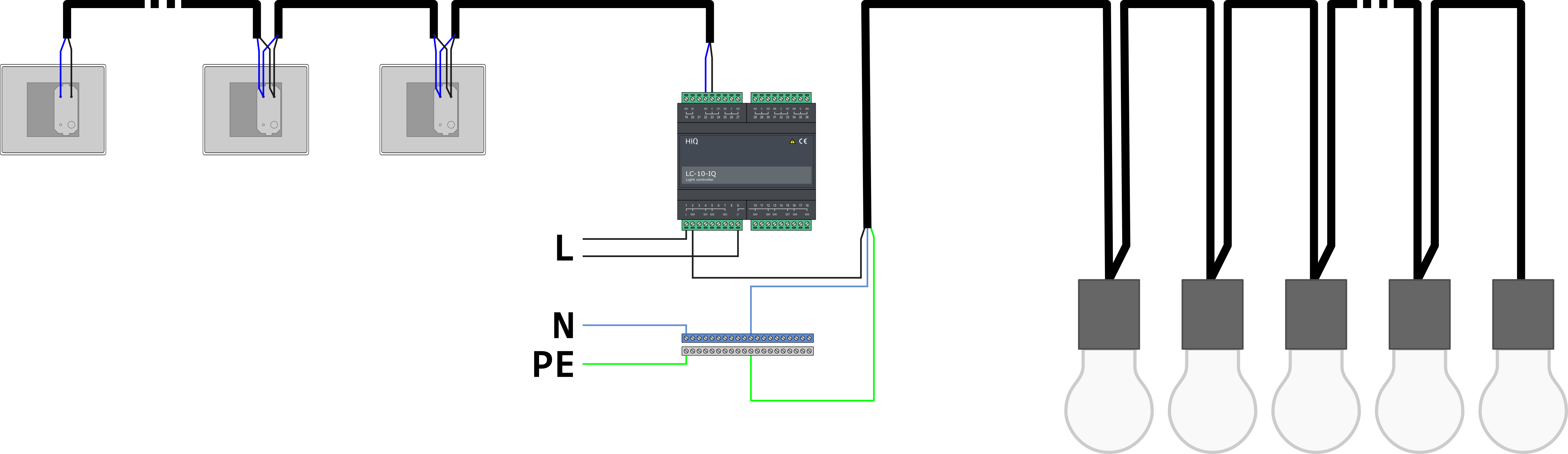 - lots of lights and keys that work in parallel